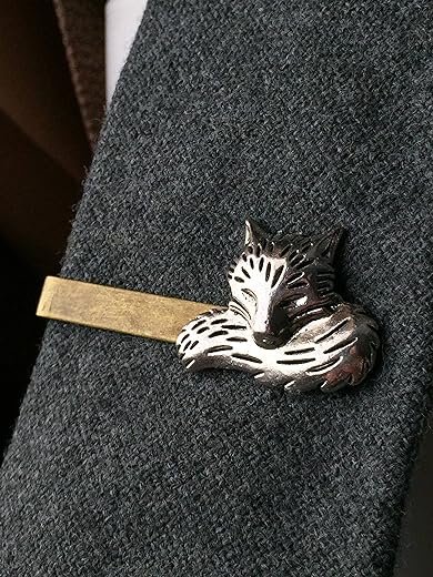 Men can also accessorize with tie clips to showcase their style and protect their ties from falling into food or getting wet. This 2″ antique bronze tie clip features an antique silver fox, perfect for animal lovers. Handmade and unique, each clip may vary slightly in color or construction. Casual enough for everyday wear, these clips are ideal for themed outfits and add a touch of attention-grabbing flair.