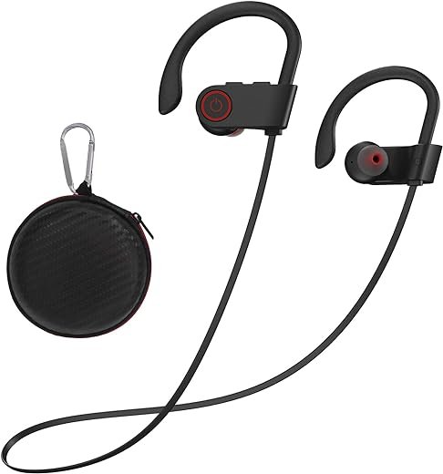- [IPX7 Waterproof] Ergonomic ear hooks, coming in 3 sizes to fit your ear canals. Comfortable and secure neckband design makes you get rid of the problem of entanglement of the earphone cord. IPX7 waterproof, exercise at random, no fear of sweat and rain. Equipped with carabiner and storage bag, perfect for running, cycling, mountaineering, fitness and etc
