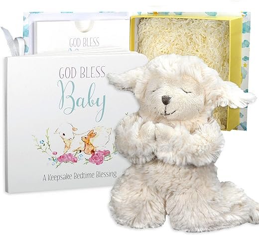 • GOD BLESS BABY GIFT SET: An ideal baptism gift, this set includes a plush “Pray With Me” Lamb reciting bedtime prayer and a beautifully illustrated board book with a bedtime blessing and Baby’s First Prayer. Perfect for newborns and infants, it’s a cherished keepsake for years to come. Suitable for baby baptism, christening, or Easter gift for girls. Ideal for baby boy or baby girl baptism gifts.