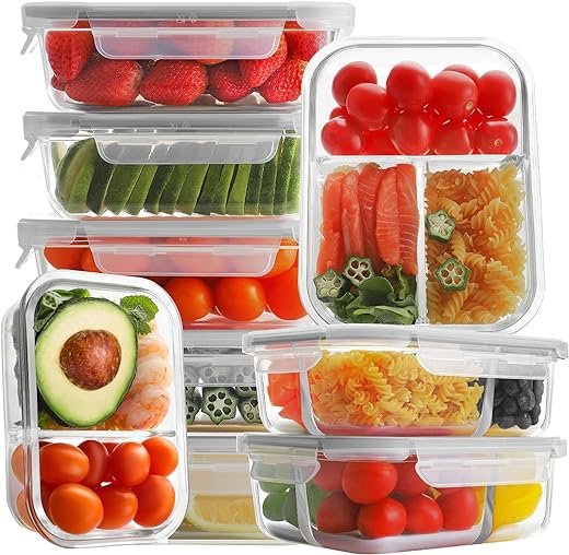 - [BPA FREE MEETS YOUR NEEDS] BPA-Free plastic locking lid is safe as well as leakproof. High quality borosilicate glass is more durable and easy to clean without absorbing stains or smells.Not only can you take it for storage such as dry food,but also great for holding liquids such as juice,soup and more, you can use them over and over again. Please handle with care and do not stack containers without separating by plastic layer or something else to avoid friction and breakage