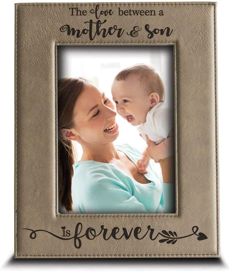 Introducing our high-quality leatherette frame, designed and engraved by BELLA BUSTA. Made with faux leather, this frame offers a luxurious feel and durability. The cover photo is protected by real glass, and the package is eco-friendly, featuring a stamped logo and label. It can be hung or stood horizontally or vertically to suit your preference. The frame measures 7 3/4″ x 9 3/4″, making it perfect for displaying a 5″ x 7″ vertical photo. Elevate your living space with this stylish and versatile frame.