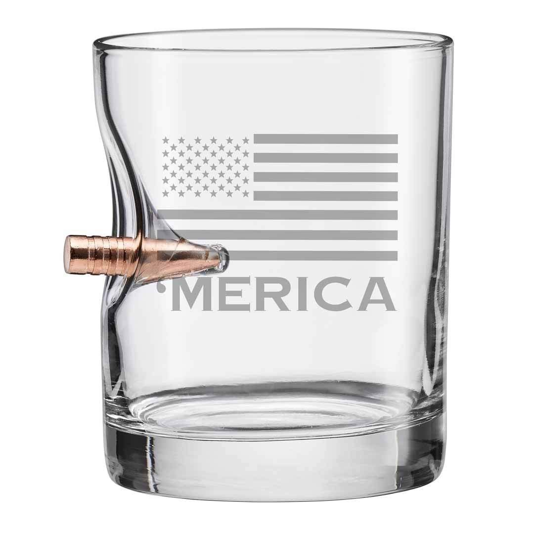 BenShot 11oz ‘Merica Rocks Glass with Real .308 Bullet