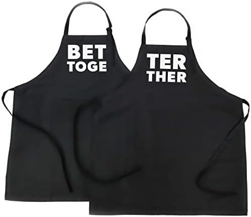 - INCLUDED: 2 Aprons – “Better Together” split up between the 2 aprons (BET TOGE & TER THER), 2 Large Pockets at the front, adjustable neck strap