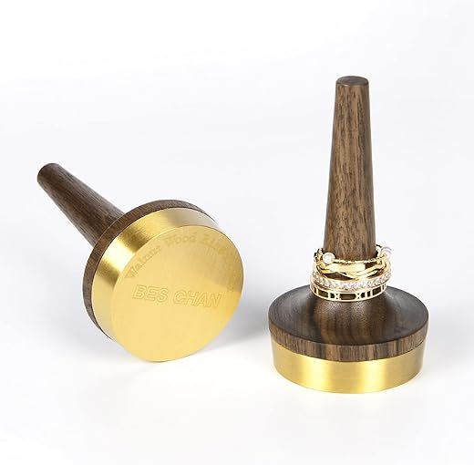 The wooden ring holder is a stylish and durable jewelry display made from black walnut wood with a solid brass bottom. It is well-balanced and won’t easily tip over, making it perfect for storing rings in the kitchen, bathroom, or table. It’s a thoughtful and charming gift for weddings, anniversaries, or special events. The holder fits most US ring sizes and can be stacked for easy storage or display. It comes in a fine package, making it ideal for gifting.