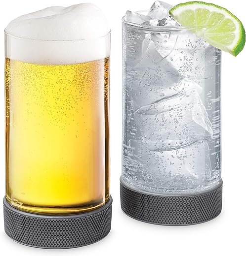 Perfect for hockey lovers, these hockey puck pints are the ideal addition to your collection. Made with a non-slip base of BPA-free food-grade silicone, these glasses are not only practical but also double as coasters. The liquid glow enhancer on the inside bottom of each glass enhances the true color of your beverage. Whether you’re enjoying a soda, juice, or cocktail, these glasses are perfect. Each set includes two hockey puck pints, with dimensions of 3.1 x 3.1 x 6.2 inches and a capacity of 22 ounces. Made of glass and silicone, they are dishwasher safe (top rack).