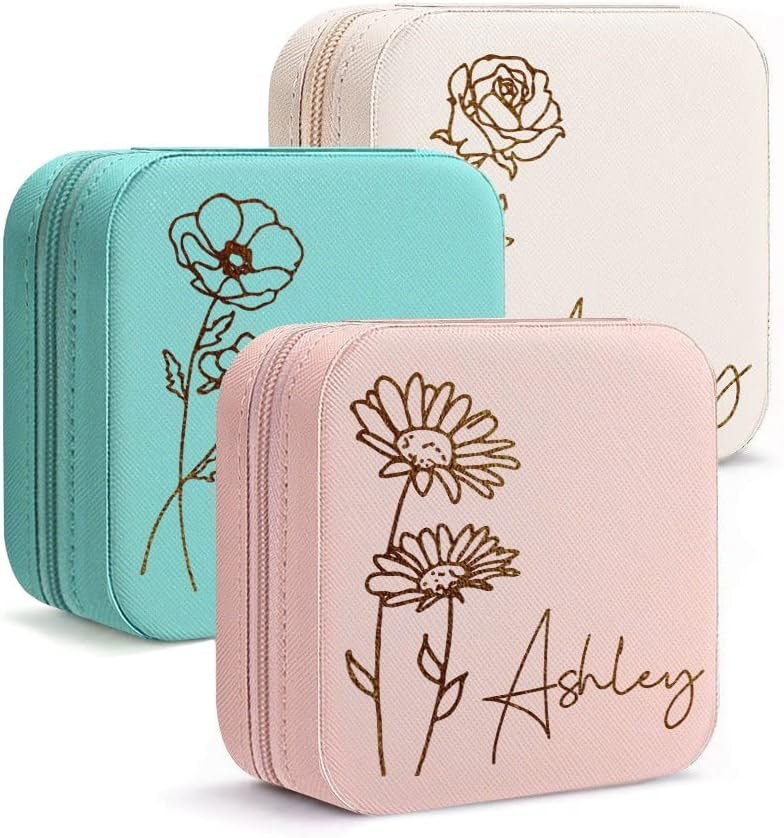 • 🎁For Gift Giving: Travel jewelry boxes for women, to be personalized with name or birth flower, will be the best gift for your bridesmaids, mom, girlfriend, daughter, wife, friends on Birthday, Christmas, birthday, anniversary, Valentine’s Day.