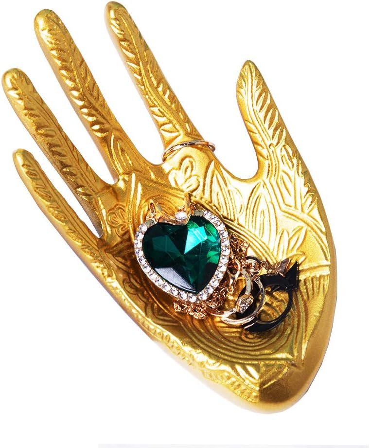 - A BUDDHA HAND DESIGN: In all faiths, the Buddha hand symbolized a protective sign, brings its owner happiness, luck, health, and good fortune. This beautiful resin ring and jewelry hand plate is a perfect place to keep your rings, bracelets, necklaces and other jewelry.