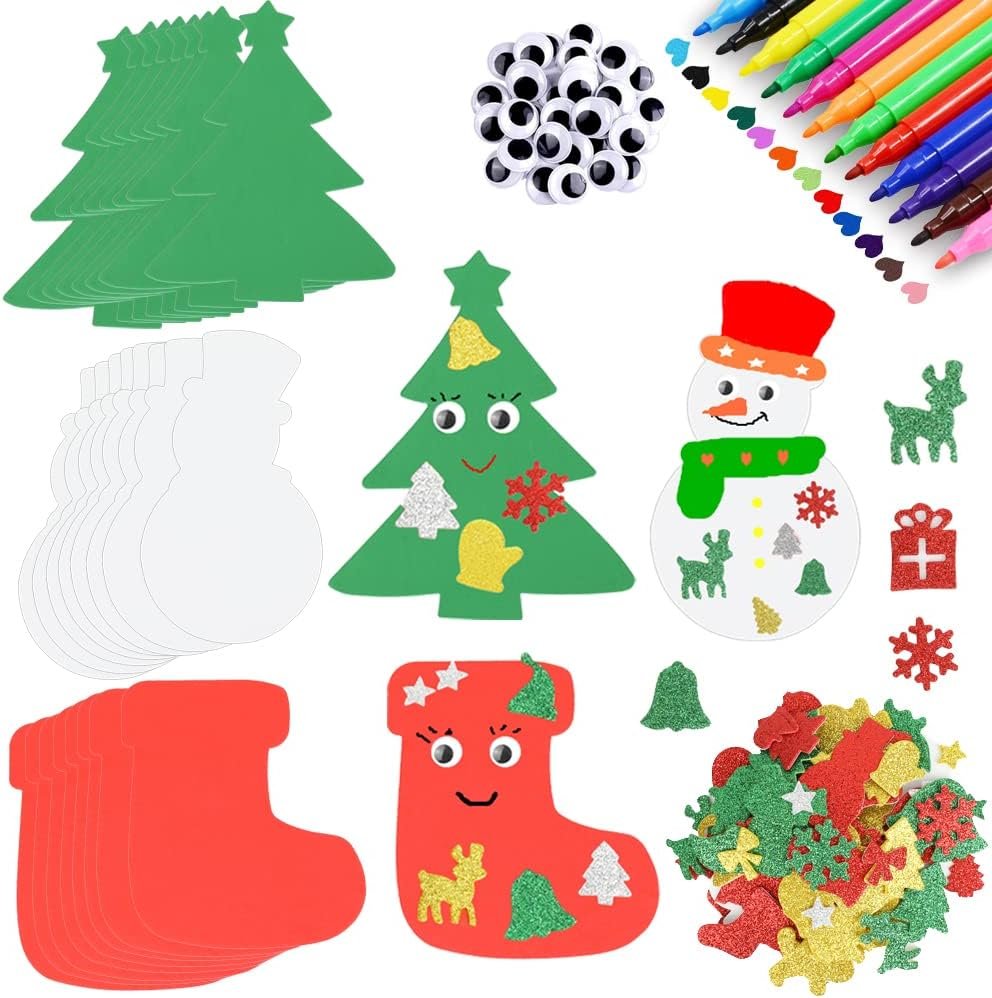 - Super Value – Package includes 8 christmas foam tree ,8 christmas foam boot,8 christmas foam snowman,160 christmas foam stickers,12 color watercolor pens and 50+ wiggle googly eyes.