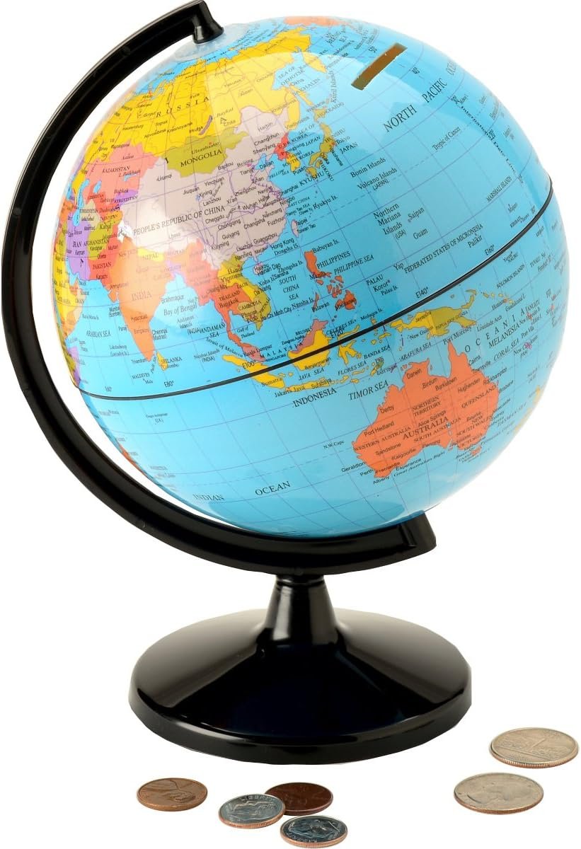 • Built to Last: Our 6” Coin Bank Globe lets you store coins of all different types. The easy-to-access bottom of the globe allows you to easily retrieve what you have been saving up. Built to last, the durable globe serves as beautiful decor.