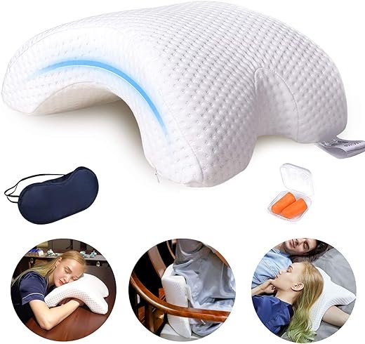 The Cuddle Pillow is made of ice silk, a polyurethane pillow core, ABS plastic steel frame, and inner memory foam. It has a tunnel design to relieve arm pressure and allows you to lie down comfortably without squashing your arm. This versatile pillow can be used in various settings such as the office, home, or during travel. It features a patented brace system and supports the weight of your partner’s head, preventing numbness in the arm. The pillow is also machine washable and comes with an eye mask and earplugs.