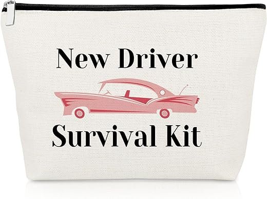 - New Driver Gift for Women -New Driver Travel Cosmetic Pouch .Congratulations on Passing The Driving Test Gift Bag ,First Car Makeup Bag Drivers License Gifts for Daughter Going to College Gift From Parents.