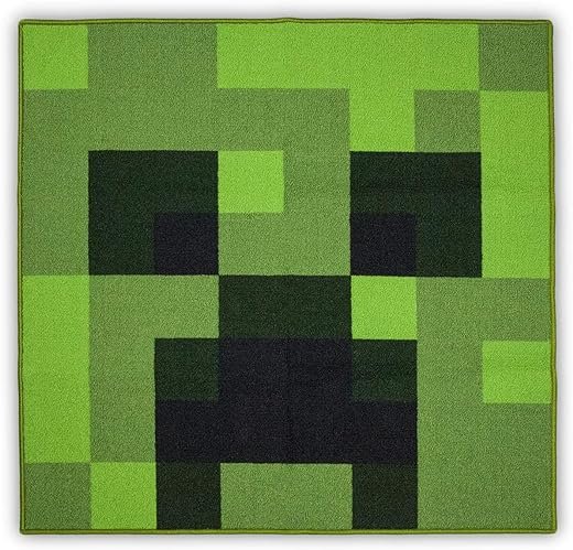 • QUALITY RUG MINED FROM MINECRAFT MATERIALS: This 39 Inch square Minecraft Creeper area rug is perfect for any Minecraft fan! Made of 100% Polyester with bound edges and featuring the classic Minecraft pixelation style, this Creeper block rug is made to last for years to come!