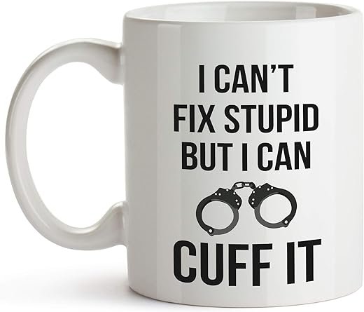 - 🎁 [Best Gift for Police Officers] – Our funny coffee mugs make great police officer gifts for men and women with the design that says “I can’t fix stupid, but I can cuff it.” Let your cop friend or police husband enjoy his every sip of coffee with this police chief mug.