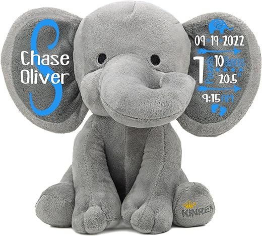 - Birth Stats Announcement: The theme of this plush elephant baby is perfect for celebrating the birth of born baby or for giving as a gift during the birth of baby. This personalized elephant stuffed animal is a great choice and is suitable for babies, toddlers, and kids of all ages, and can be enjoyed for years to come.