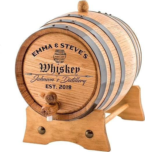 Introducing the Handcrafted American White Oak Wood Barrel with Laser Engraved black steel hoops. This 1-liter barrel features a medium charred interior for optimal aging. It’s perfect for aging spirits, whiskey, wine, beer, and more. Use it as a home decoration too. The barrel comes with a 90-day warranty and instructions to cure & seal. You can also choose to have your own engraving! Highlight the benefits and features of this unique product in just under 70 words – order now!