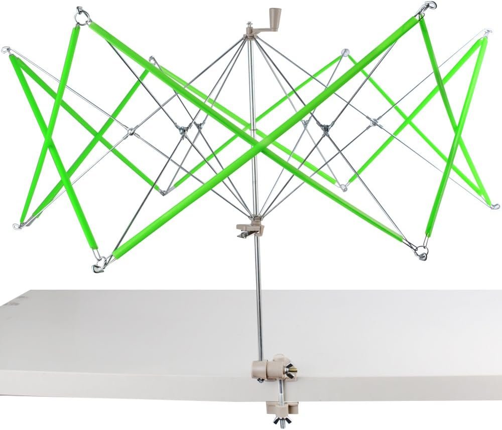 Introducing the handy 1-piece umbrella swift yarn winder! This hand-operated ball winder is a must-have for craft enthusiasts. With dimensions of 17 x 19 x 21 inches and an adjustable clamp, it offers versatile operation. The integral handle allows for easy winding, and it can be used vertically, horizontally, or at an angle. Packaged in a box, this perfect craft tool improves the efficiency of yarn winding on desks thinner than 1.69 inches.
