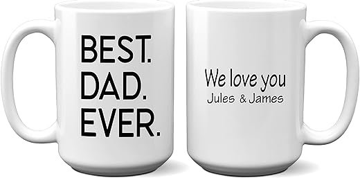 • The mug reads “Best Dad Ever” with a nice personalization on one side. This mug will be a great reminder to your dad about how much you care for him every time he drinks out of it.