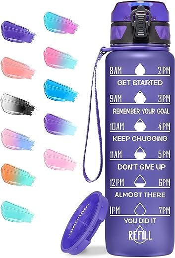 This high-quality water bottle is designed to motivate you to drink more water and reach your health and fitness goals. It features inspirational quotes and time markers. The bottle is made of BPA-free and toxin-free material, making it safe for daily use. It is perfect for various activities such as hiking, cycling, and yoga. The functional design includes a one-hand open button, a secure lock lid, and a fast water flow mouth opening. It also comes with a removable strainer for infusing fruit or tea. With its vibrant colors and cute patterns, it makes a great gift for anyone who enjoys a healthy lifestyle. If you have any issues, just contact us for immediate assistance. Please note that we are recommending products and do not provide any warranty or return services.