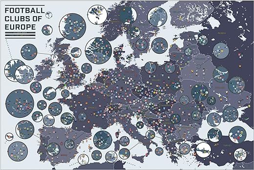 The Definitive Football Map is a comprehensive infographic that showcases over 1,000 top football teams in Europe, with each team represented by their official crest. The map also color-codes each country based on their UEFA rankings. It includes the top five league levels in football-dense countries and at least the top two levels in every county, ensuring that every fan’s favorite club is featured. The map is printed in the United States using high-quality materials and is ready to be displayed on your wall. It comes in premium packaging, making it a perfect gift option. Created by Pop Chart, a reputable studio known for their eye-catching art prints, this map is a must-have for football enthusiasts.
