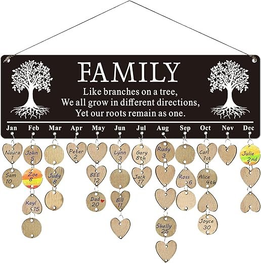 - → Christmas Birthday Gifts for Grandma Mom, Family Birthday Reminder Calendar Board keeps All Family Birthdays In One Place – Does your mother or grandmother often forget the birthdays of family members? This birthday reminder calendar board is a great gifts for someone with large family to keep track of all birthdays & anniversaries.