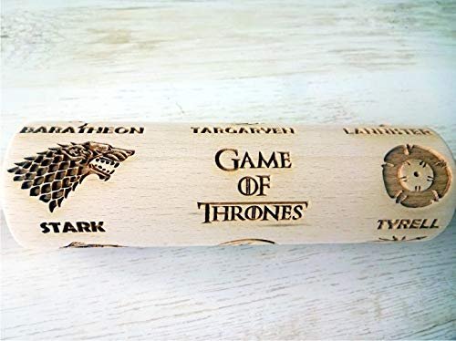 Made of beech wood. We precisely laser-engraved this rolling pin, polished by hands and covered with protective wood conditioner made from organic food-grade oil. Because this is a natural wood product there will be color variations that will be different from what is shown. There can also be visible wood rings on engraved surface.