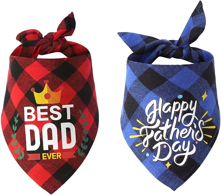 • 🎁【Classic Plaid with Print Design】Classic stylish plaid with “Happy Father’s Day”, “Best Dad Ever” pattern triangle pet bandana.