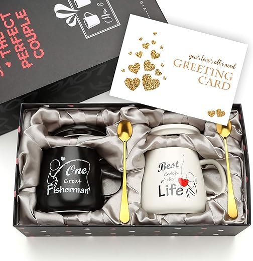 Looking for the perfect romantic gift for couples? This set includes two 15 oz mugs, cup lids, spoons, a gift box, and a greeting card. With elegant handmade design and high-quality materials, these microwave and dishwasher safe mugs are ideal for coffee, tea, or any beverage. The stunning chic gift box adds a touch of luxury to any occasion. Whether it’s Valentine’s Day, a wedding, anniversary, or holiday celebration, this gift is sure to impress. Satisfaction guaranteed – contact us with any questions or concerns.