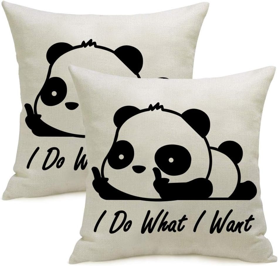 This set of two cotton linen pillow covers features a cool design with a funny cute panda giving the middle finger and the words “I Do What I Want” printed on both sides. They are 18×18 inches in size and can be used to decorate your bedroom, couch, sofa, chair, patio, car, or bed. They add an elegant touch to refresh your room and home. These pillow covers make an ideal gift for your loved ones and come with a money-back guarantee.