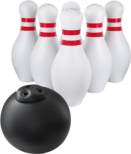 - Fun Inflatable – Enjoy endless hours of summer fun with this giant inflatable bowling set, perfect for both kids and adults. Set includes 6 bowling pins and a large ball and can be used indoors or outdoors.