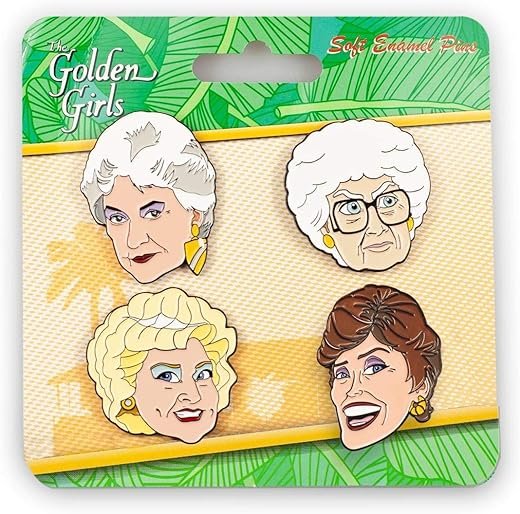 Celebrate the groundbreaking show that honored mature women with this collector set of enamel pins. Featuring the iconic characters Dorothy, Rose, Blanche, and Sophia, these pins are the perfect size for decorating your bag. With their modest yet lovingly detailed design, they pay homage to the show without being ostentatious. These officially licensed pins allow you to own a piece of television history. Get ready to proudly display your admiration for these wonderful women and their legendary show.