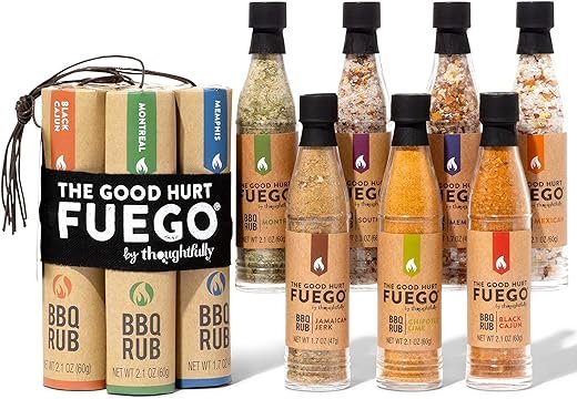 Introducing the Unique Gift BBQ Rub Set! This explosive gift includes 7 distinct flavors, housed in dynamite-themed packaging. From Jamaican Jerk to Chipotle Lime, these vegan and vegetarian-friendly rubs will bring a taste explosion to your dishes. Simply sprinkle on meat or veggies, grill to perfection, and savor the subtle flavors. With its ready-to-gift bag, this set is the perfect present for any barbecue enthusiast. Elevate your grilling game and unlock a world of delicious possibilities!