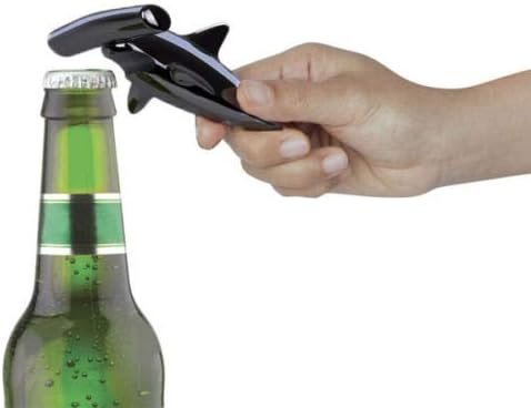 Introducing the 2-in-1 Cast Metal Corkscrew and Bottle Opener shaped like a Hammerhead shark! This versatile bar tool is not only functional but also makes a fantastic gift. Its animated design adds a touch of fun to your bar collection. The gunmetal gray color adds a sleek and stylish look. With dimensions of 5 3/4 x 3 1/2 x 2 inches, this opener is compact and easy to use. Add a unique touch to your bar and open bottles with ease with this shark-shaped opener!
