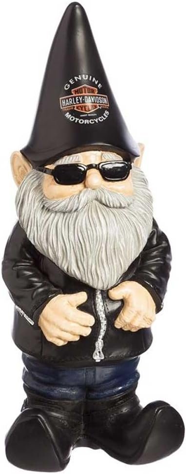 Introducing the Harley-Davidson Biker Garden Gnome – a charming addition to your outdoor space. This garden gnome is made of painted polystone, showcasing your favorite leathers and ready for a ride. With the belief that garden gnomes bring good luck, this 4.5″ W x 3.5″ D x 11″ H gnome will bring a touch of whimsy and positive energy to your garden. A perfect gift for any Harley-Davidson enthusiast.