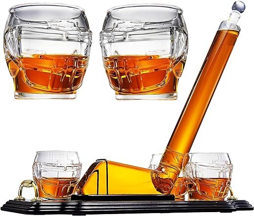 • GOOD FOR MANY DRINKS AND ANY BAR: Great for vodka, liquor, whiskey, and more, this is one set that will make you stand out. This hockey stick decanter is a beautiful way to serve expensive alcohol.
