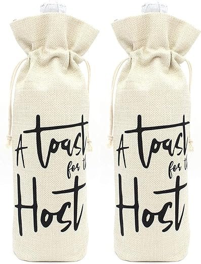 • 2)Color: White Cotton core drawstring, Beige color Wine bottle cover, Black printing”A Toast For the Host”.