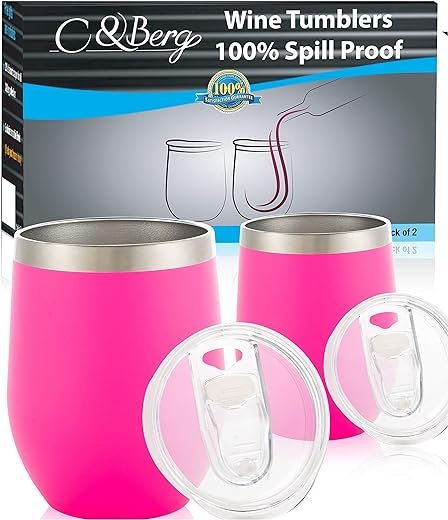- ✅ PERFECT COMPANION INSULATED TRAVEL WINE TUMBLER SET WITH LID STAINLESS STEEL – These 12oz insulated stainless steel wine cup come with air-tight lids for you to carry your coffee, beer, wine or ice cream without splashing. C&Berg offers different color options for your advanced insulated tumbler – Rose Gold, Teal, Holographic Sparkle, Rainbow, Stainless Steel, Hot Pink, Purple, Black, Pink White and more..