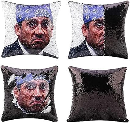 Introducing the Funny Prison Mike Face Sequin Pillowcase, made with 60% sequin and 40% suede fabric. This unique pillowcase features reversible sequins on the front and soft suede fabric on the back. Slide the sequins to pose different expressions and relieve stress and anxiety. Perfect for decorating your room, sofa, car, or chairs, and makes a weird and fun gift for boys and girls. The invisible zipper allows for easy closure without interfering with the sequins. Hand wash to maintain the integrity of the sequins.