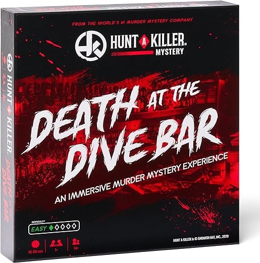 Death at the Dive Bar is an immersive puzzle game that challenges you to solve the murder of local bar owner Nick Webster. This mystery game is perfect for game night or a murder mystery party, and can be played solo or with friends and family. With a difficulty level of 1/5, it’s great for beginners, and suitable for ages 14 and up. Dive into the thrilling crime game experience, be part of the investigation, and test your problem-solving skills with this fun family puzzle game. Discover the world of Hunt A Killer games and change up your game night with their immersive mystery and crime games.