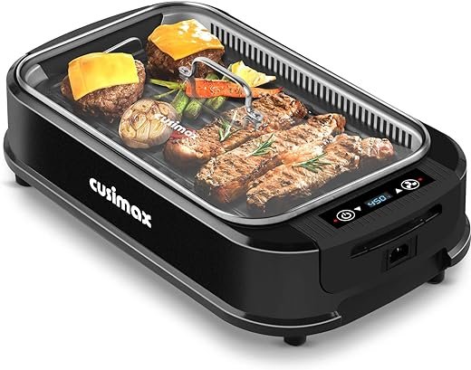 - [An real Electric INDOOR GRILL]-CUSIMAX Smokeless Grill with Turbo Smoke Extractor brings away most smoke when grilling. You don’t have to worry about triggering the smoke alarm or make the whole condo smell like a BBQ restaurant when cooking. Enjoy BBQ and beer indoors together!
