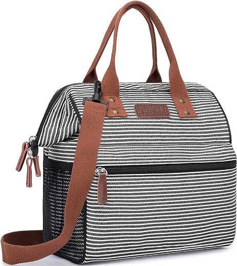 • 【Wide-Open Mouth Lunch Bag】–The lunch bag is built with wide-open mouth. Top of the lunch bag can be opened up to 10.5″L x 7″W by dual zipper closure, that means your lunch container can be put into the bag and taken out of the bag easily. It is convenient to access the lunch bag and it can prevent the liquid from leaking out of the container and soiling inside of the bag.