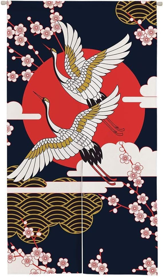 Japanese Noren Doorway Curtain: Crane & Sakura