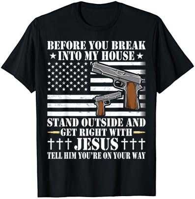 - Before you break into my house stand outside and get right with jesus design. Perfect for the gun lovers, the pistol packers, the revolver or handgun owners. Gift for veterans, anti liberals, trump supporters, second amendment defenders and republican.