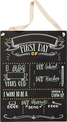 The Milestone chalkboard is a handy tool for recording your child’s first day of school. It has a fabric loop for easy hanging and measures 9.50″ x 13″. Designed by Cathy Heck Studios, it features sections to fill in your child’s name, age, school, teacher, future aspirations, favorite book, song, and food. Whether you want to add a touch of humor or heartfelt sentiment, Primitives by Kathy has the right gift to express your feelings. Please note that we only recommend products and do not have any ownership or service authority over them.