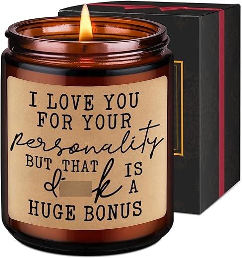 • Printed with a saying “I love you for your personality but that d is a huge bonus”, this candle makes a unique candle gift idea for him, your man, best husband, best boyfriend, gay husband, gay boyfriend, your guy, fiance, hubby, bf, couple, lover, male friend or your significant other whom you want to surprise on a special day