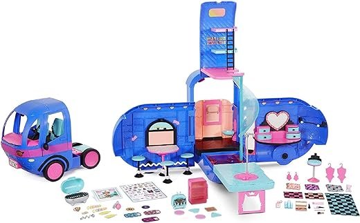 - 4-in-1 GLAMPER extends up to 2 feet tall and 3 feet wide with over 10 outrageous hangouts to choose from. Detach the front and it becomes a cute car. It has adjustable features that would fit all LOL Surprise dolls and OMG Fashion dolls.