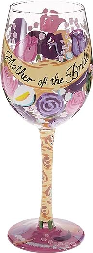 The “Mother of the Bride” wine glass by Designs by Lolita is the perfect gift for a mother on her daughter’s wedding day. This beautiful glass comes in a decorative gift box, making it a special keepsake. Each glass features a unique cocktail recipe under the base, adding a fun twist to the traditional wine glass. Made of blown glass with hand painting and glitter accents, it is a truly exquisite piece. While it needs to be hand washed, its 15oz capacity ensures you can enjoy your favorite drink.