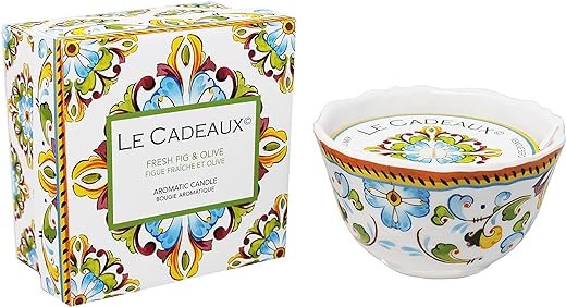 - Le Cadeaux fragranced candle poured in a pretty and practical decorative melamine bowl comes with a beautiful gift box to make gift giving effortless. Product includes 1 candle in a 4.75 by 2.75 inch melamine bowl and 1 gift box 5 by 3 inch.