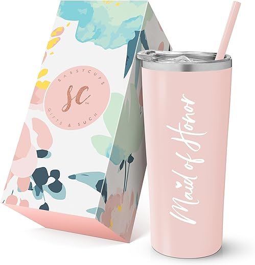 Looking for a special gift for a special person? This maid of honor tumbler is the perfect choice. With its stylish design and 22 oz capacity, it keeps drinks hot or cold. It comes in a beautiful gift box, making it ideal for a maid of honor proposal. Made with high-quality stainless steel, it’s durable and rust-resistant. Plus, if you’re not satisfied, we’ll make sure you’re 100% happy. Get this one-of-a-kind gift today!