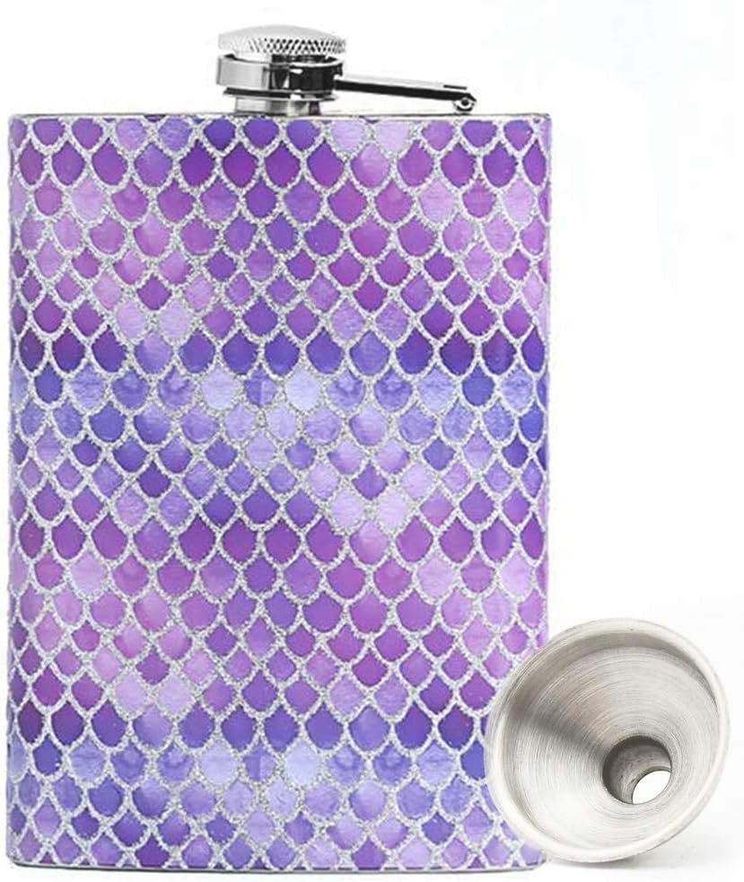 - Mermaid Flask: 8 oz Stainless steel flask, and free funnel, exquisite mermaid pattern design, three-dimensional U-shaped body, more comfortable to handle (Purple)