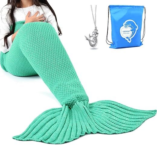 - Mermaid blanket for girls – This lovely Mermaid blanket includes a silver Mermaid necklace and a blue sports bag. Classic Girl Blanket, let your girl like a real mermaid embrace the whole night. Your little girl can finally become your favorite Mermaid role.